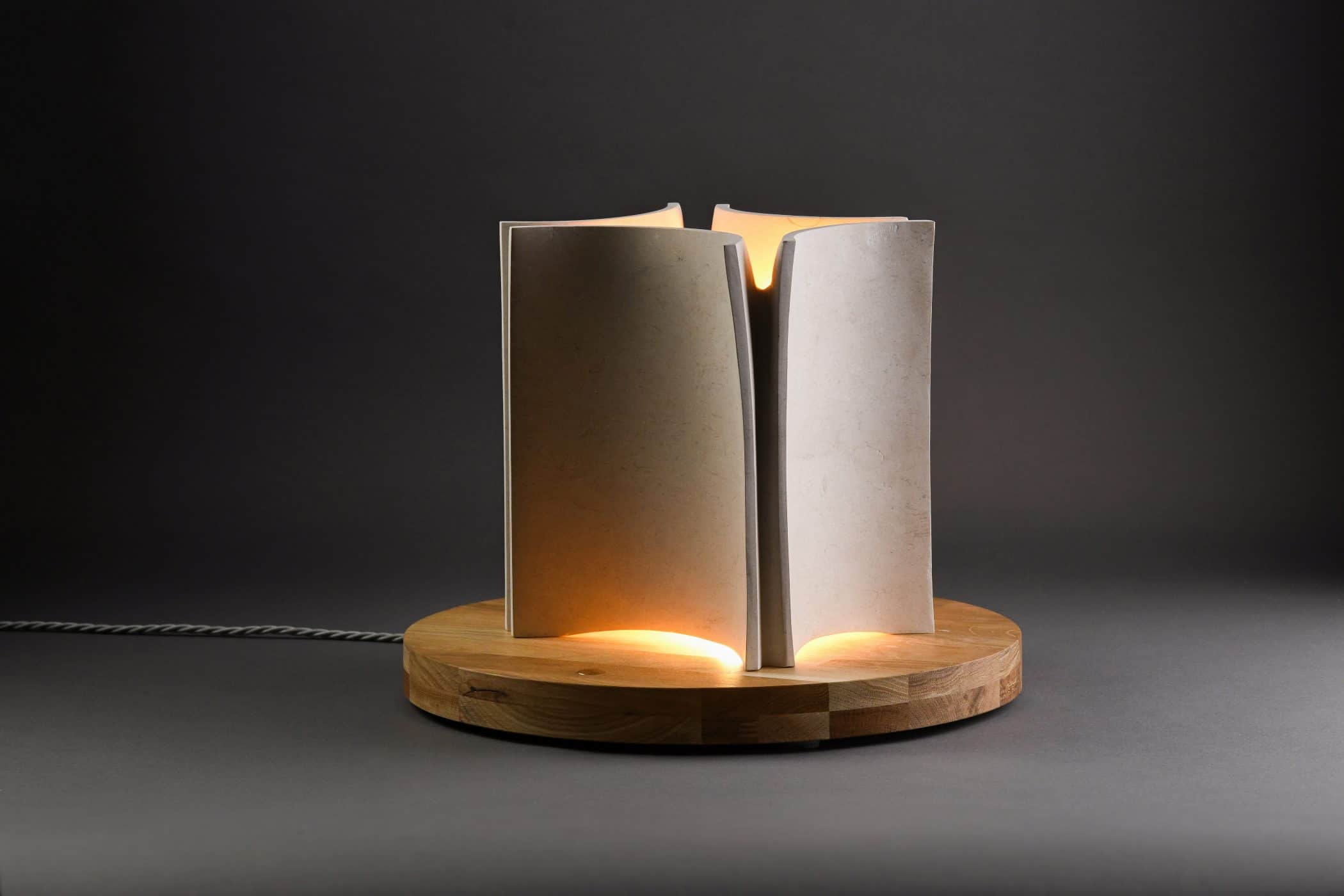Philip formte aus hellem portugiesischen Marmor eine natursteinerne Geschenktüte, die er faltet und knickt. Die Öffnung, die in der Anordnung entsteht, benutzt er als Obstschale, die zudem durch die besticht. Die überzeugend herausgearbeitete Architektonik der Faltung zusammen mit gekonnt in Szene gesetzten weiß-rosa Farbeffekten machen das Stück zu einem einzigartigen Beitrag im diesjährigen Wettbewerb.