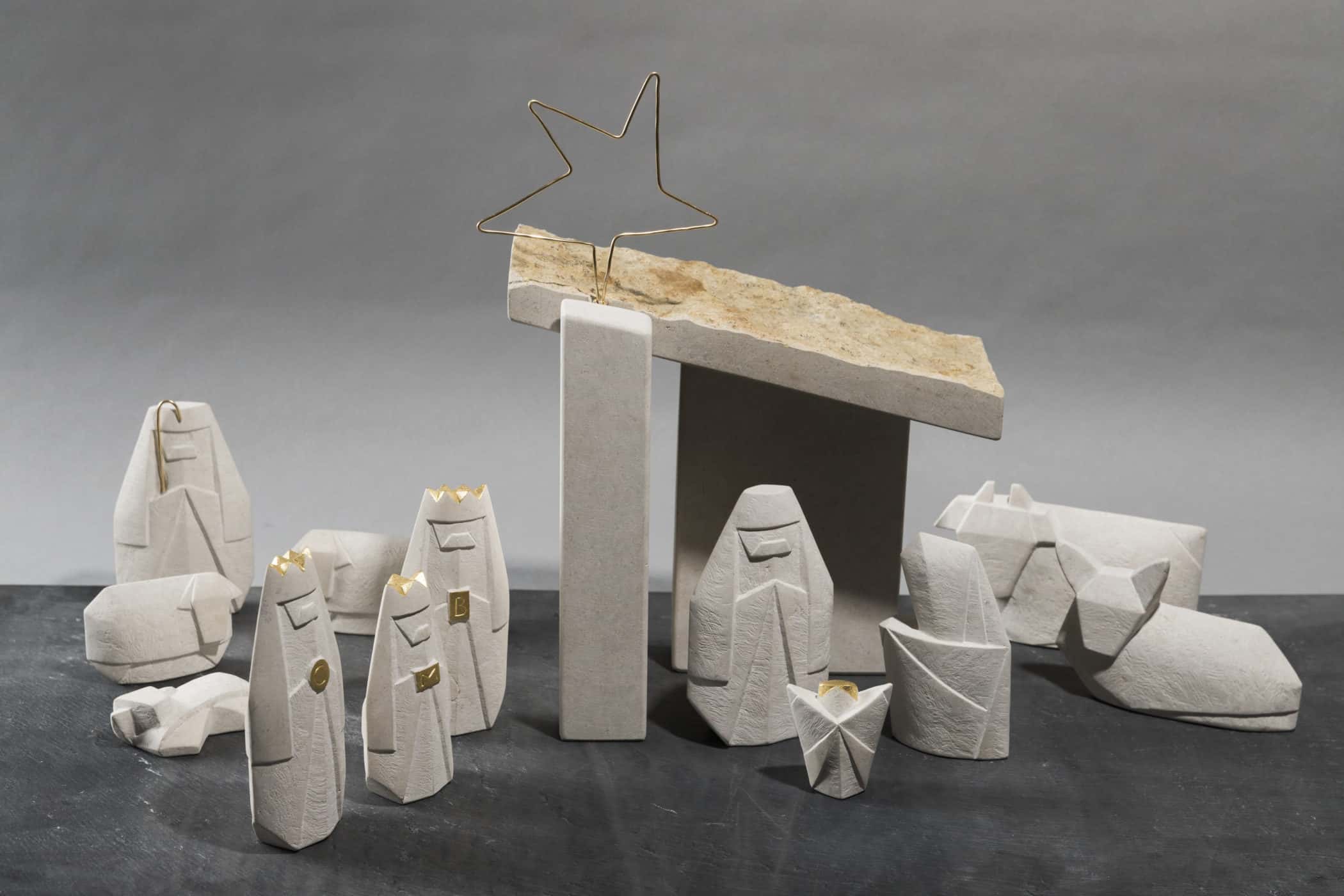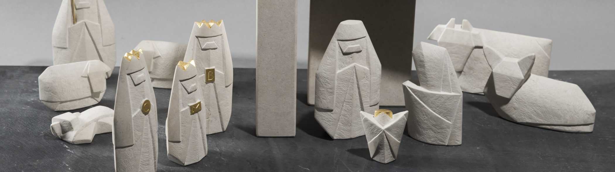 Die Figuren der traditionell aufgebauten Krippe sind teils geschliffen, teils fein handwerklich bearbeitet. Einzelne Details sind vergoldet.