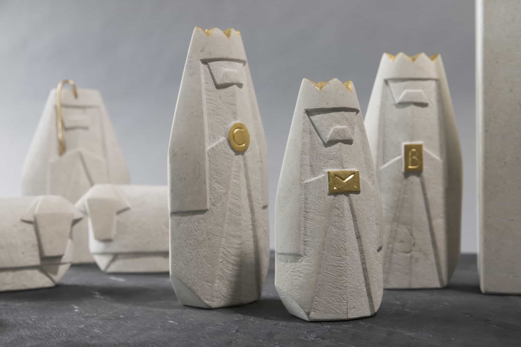 Alle männlichen Figuren bestehen aus der gleichen Grundform und wurden nur mit Attributen versehen, um ihre Rolle erkennbar zu machen (z.B. Kronen, Hirtenstab).