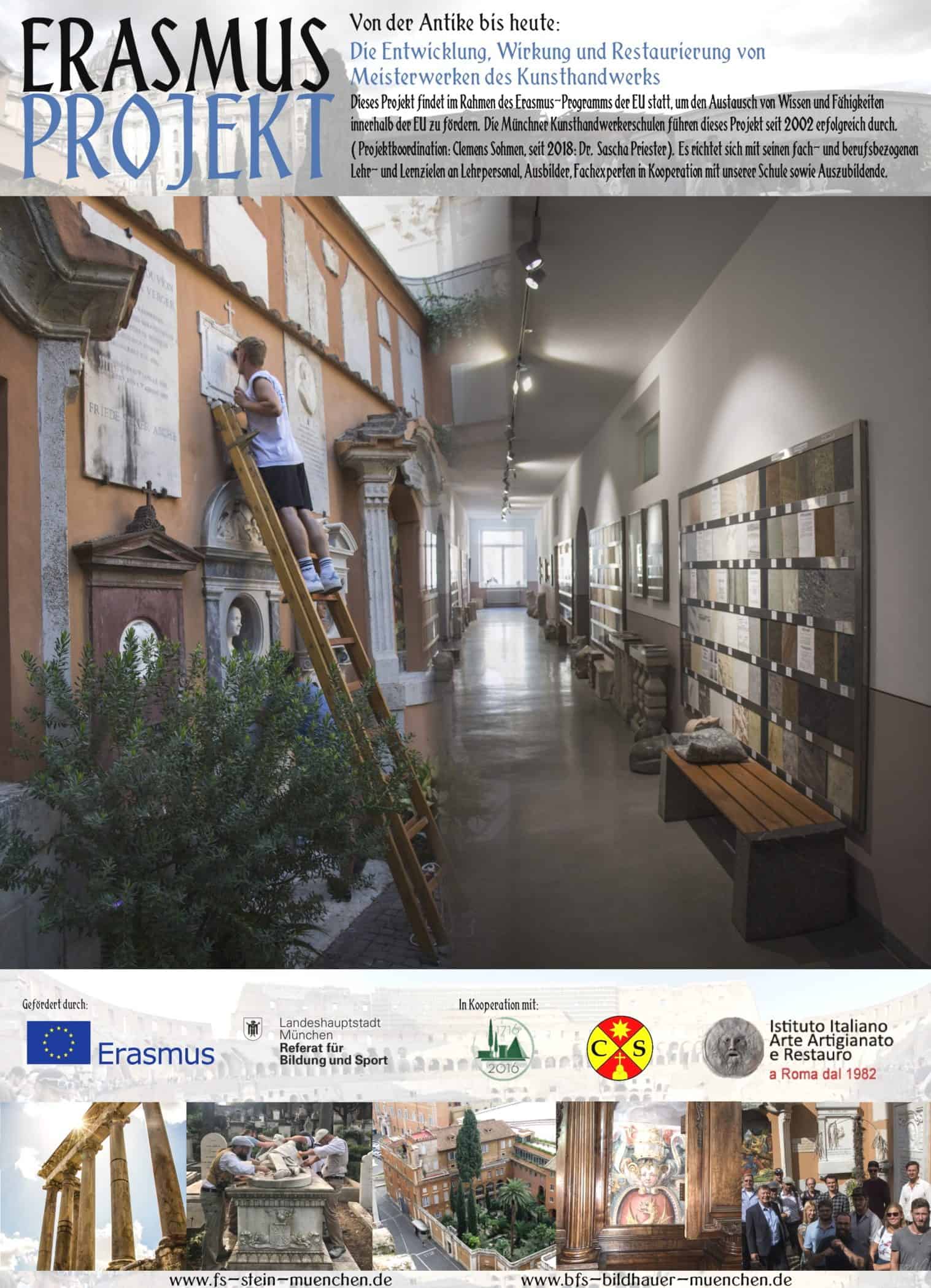 Im Rahmen unseres laufenden Erasmus+-Projektes in Rom (“Meisterwerke des Kunsthandwerks”) findet im Schuljahr 2020/21 eine Vortragsreihe statt. Sie dient der Vertiefung und Erweiterung unseres Unterrichts und richtet sich an die teilnehmenden Schülerinnen und Schülern aus den Bereichen Holz und Stein. Je nach Corona-Situation finden diese Veranstaltungen, die von Lehrpersonal, Ausbilder*innen und externen Experten begleitet und auch als Gesprächsrunden gestaltet werden, im Präsenzunterricht oder als Online-Unterricht regelmäßig statt. Von Ausbildern, Auszubildenden sowie auch den italienischen Partnereinrichtungen gemeinsam erarbeitet und aufeinander abgestimmt, bilden diese Themen dann während der Projektphase vor Ort in Rom bei ausgewählten Besichtigungen wie auch bei der praktischen Restaurierungsarbeit Schwerpunkte unseres Programms. Diese theoretische wie praxisorientierte Projektarbeit führt zu einer beruflichen Fortbildung und Weiterqualifizierung aller Beteiligten, indem wir von- und miteinander lernen und zusammen arbeiten.